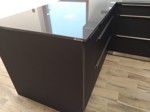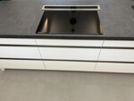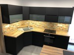 Dvířka a pohledové boky černá Matt, zadní deska sklo Extra čiré, pracovní deska Kompaktní Black tl. 12 mm