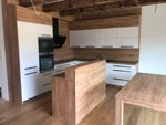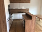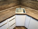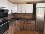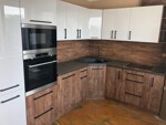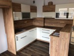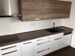 Dvířka Alpská bílá Matt, lamino Dub Halifax tabákový, pracovní deska Dub Halifas tabákový