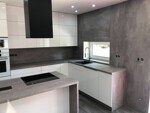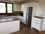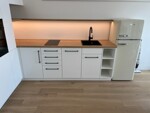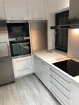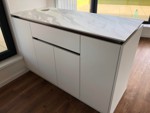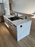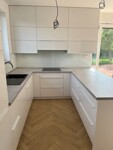 Dvířka a pohledové boky Alpská bílá Matt, pracovní deska Technistone Crystal polar white