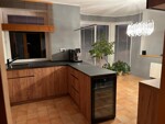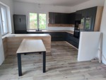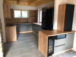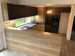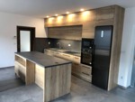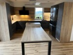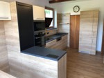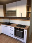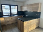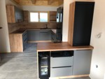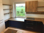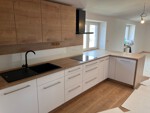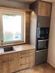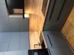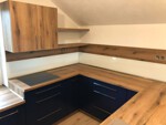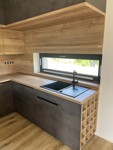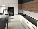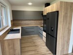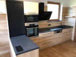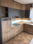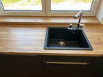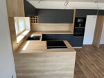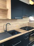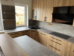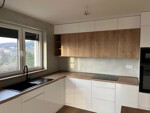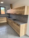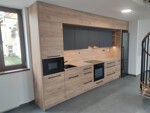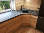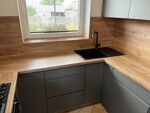 Dvířka, korpus Gold Craft Oak, pracovní deska a zadní deska Žula Nero Zimbabwe
