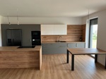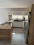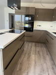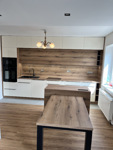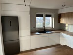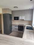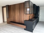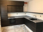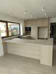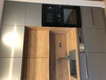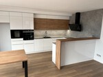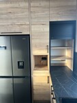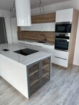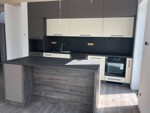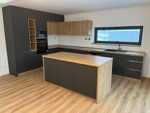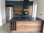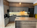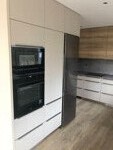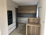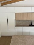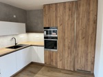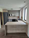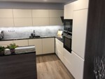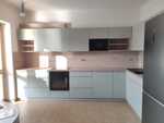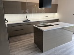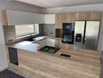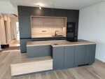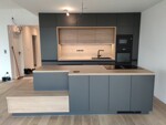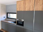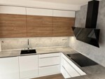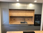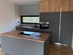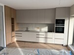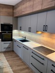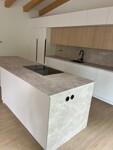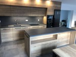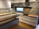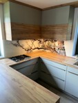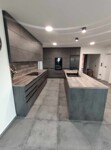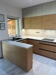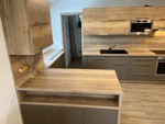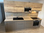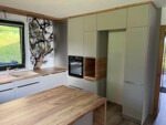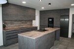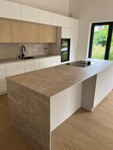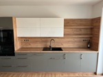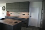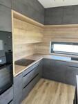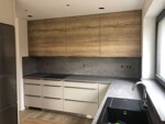 Dvířka kamenná šedá Matt a dýha, pracovní a zadní deska Technistone Noble Olympos Mist