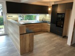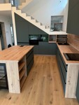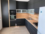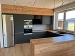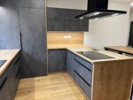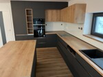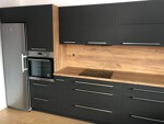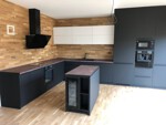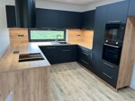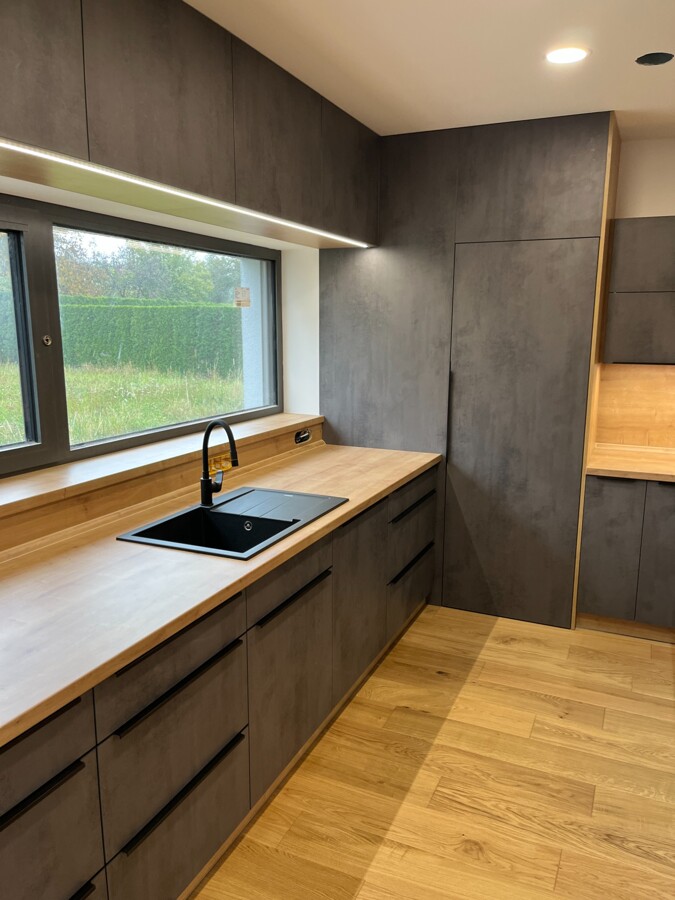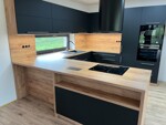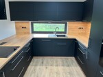 Dvířka a pohledové boky černá matt, korpus Anthracite, pracovní deska Dub Hunton světlý