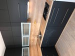 Dvířka Latté Mat, police Carbon Marine Wood, pracovní a zadní deska kompaktní Keramika antracitová