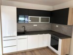 Dvířka Alpská bílá lesk, zadní deska a korpus Dub Denver lanýžověhnědý, pracovní deska Břidlice Jura antracitová