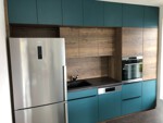 Dvířka Cobalt Grey lesk, korpus Cobalt Grey BS, zadní deska sklo, pracovní deska Granit Verceli antracitový