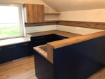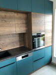 Dvířka Cobalt Grey Matt, korpus Gold Craft Oak, pracovní deska Gold Craft Oak, zadní deska Gold Craft Oak.