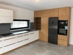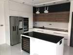 Dvříka Alpská bílá Matt a černá Matt, police Dub Kansas hnědý, pracovní deska Lapitec Bianco Assoluto Lithos