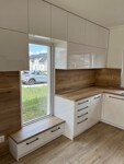 Dvířka Alpská bílá lesk a Hickory přírodní, pracovní deska Hickory přírodní