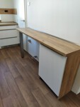 Dvířka Alpská bílá lesk, korpus a zadní deska Dub Halifax přírodní, pracovní deska Břidlice Jura antracitová