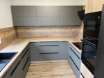Dvířka Prachově šedá Matt, korpus a zadní deska Grey Craft Oak, pracovní deska Grey Craft Oak