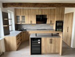Dvířka a korpus Dub Halifax přírodní, zadní a pracovní deska Pietra grigia černá