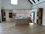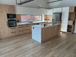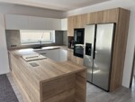 Dvířka Acrylic Latté Matt, korpus a zadní deska Dub Halifax přírodní, pracovní deska Dub Halifax přírodní.