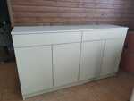 Dvířka Acrylux krémový matt, zadní deska, korpus i pracovní deska Dub Sherman koňakově hnědý